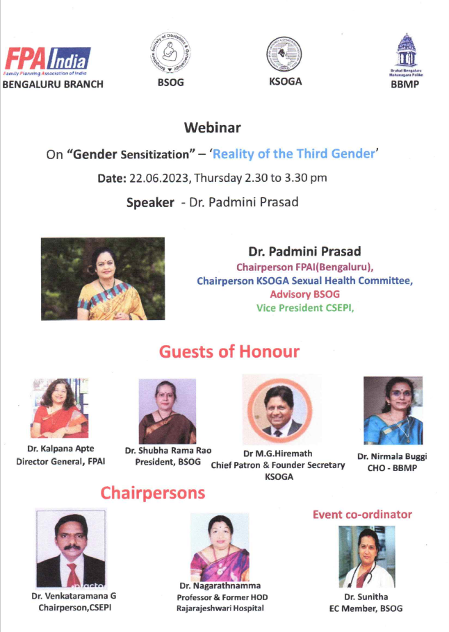Register now for this empowering webinar by Dr. Padmini Prasad in association with FPAI, BSOG, KSOGA & BBMP.